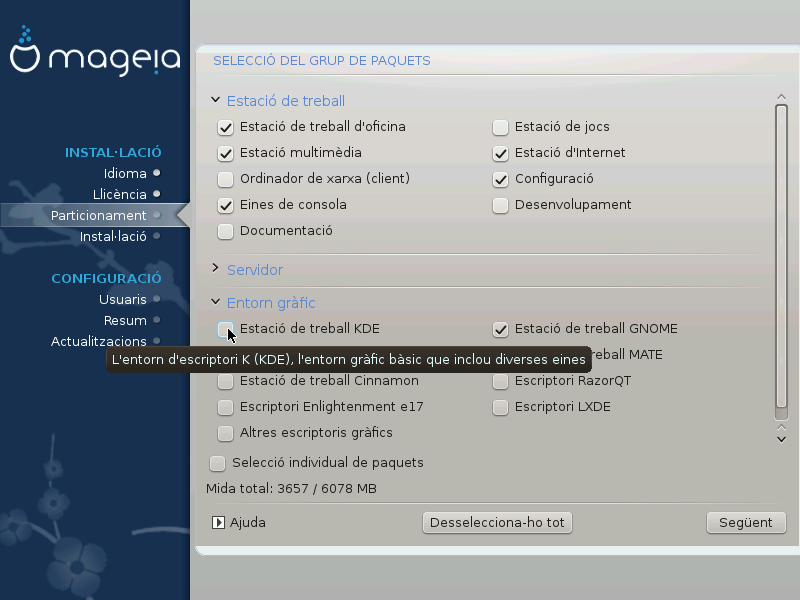 Aquesta opció us dona control total sobre la localització de la instal·lació al(s) disc(s) dur(s).