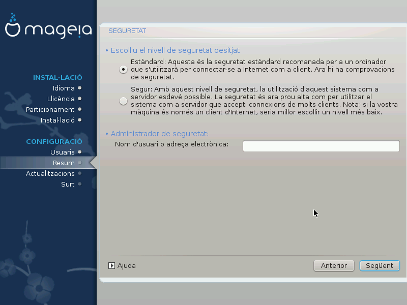 El nivell de seguretat per al vostre ordinador, en la majoria dels casos la configuració predeterminada (Standard) és adequada per a ús general. Selecciona l'opció que més s'adapti al teu ús.