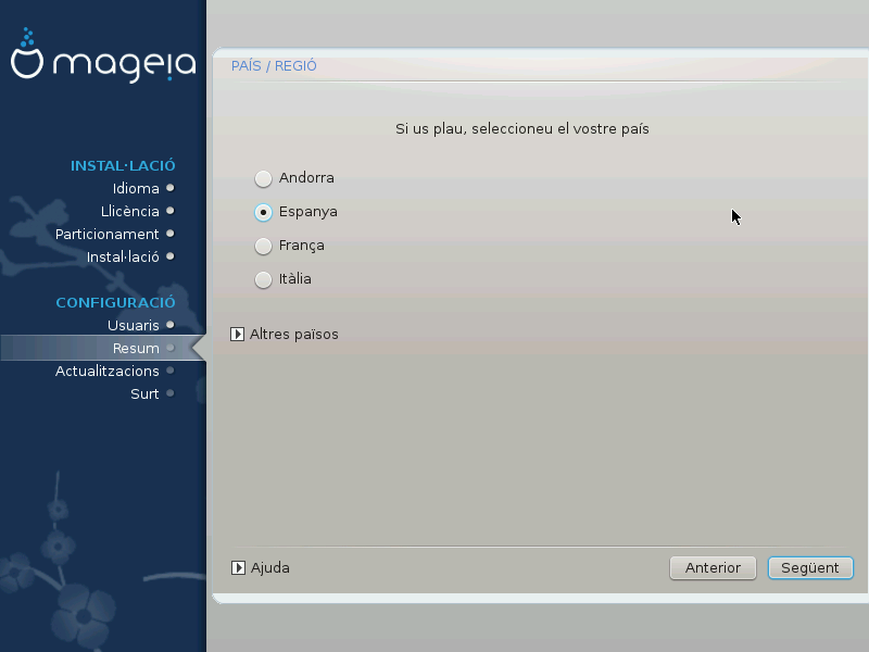 Si el vostre país només està a la llista Other Countries, després de fer clic a OK pot semblar que s'ha triat un país de la llista principal. Malgrat això, DrakX aplicarà realment la teva elecció.