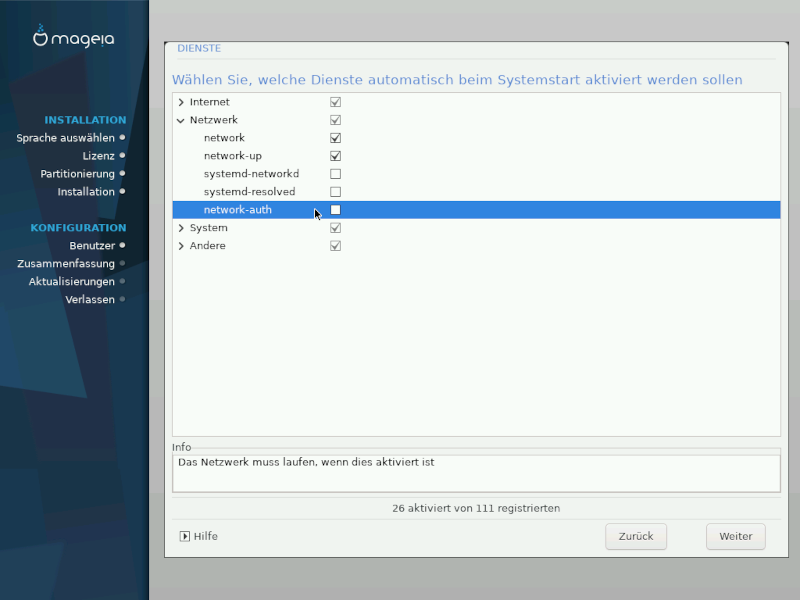 Hier können Sie einstellen, welche Dienste ausgeführt (oder auch nicht ausgeführt) werden sollen, nachdem Ihr System gestartet wurde.