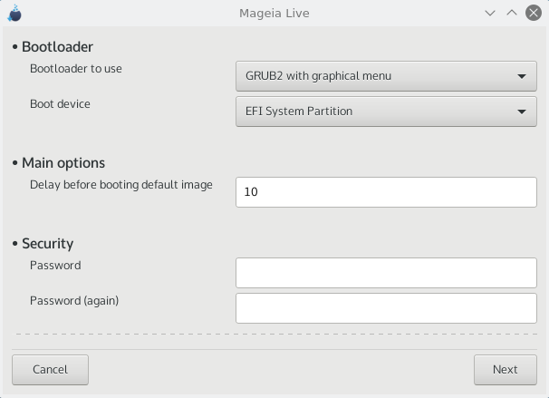b) hädaabinõuna juhuks, kui vigase UEFI BIOS-i tõttu ei tunta paigaldamise lõpus äsja kirjutatud Mageia alglaadurit ära.