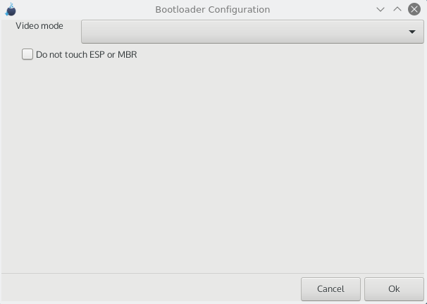 Kui eelmises sektsioonis ei valitud alglaaduriks rEFIndi, siis saab tarvitada allpool näidatud alglaaduri seadistamise valikuid: