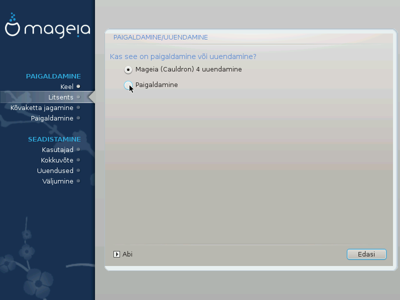 Selle valimisel saab ette võtta Mageia värske paigalduse. Sellega vormindatakse