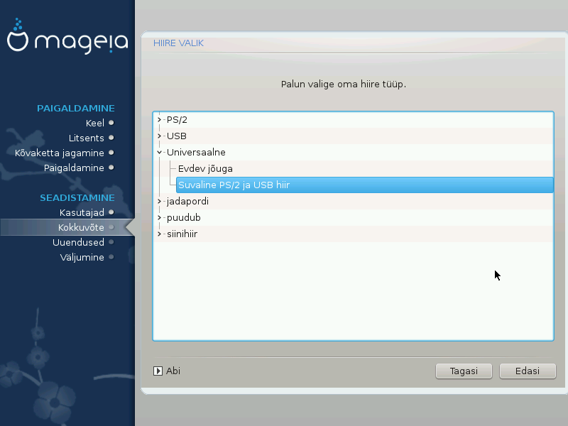 Tavaliselt on mõistlik valik Universaalne → Suvaline PS/2 ja USB hiir.