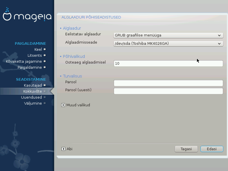 Kui valisite eelmisel ekraanil kasutatavaks alglaaduriks