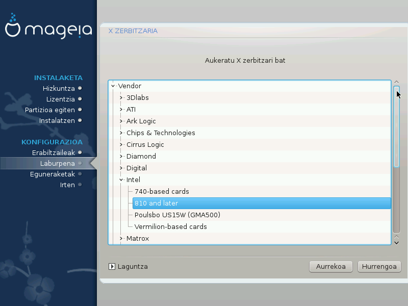 Instalatzaileak ez du behar bezala zure txartel grafikoa detektatu, eta zein duzun baldin badakizu, hautatu ahal izango duzu zuhaitzean: