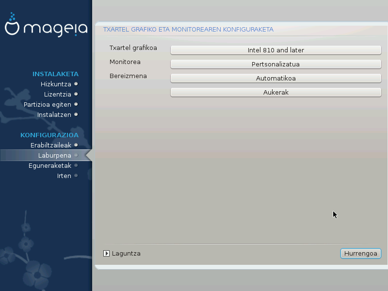 DrakX bideo txartelen datu-base osoa dauka, eta normaleanzure bideo gailua behar bezala identifikatuko du.
