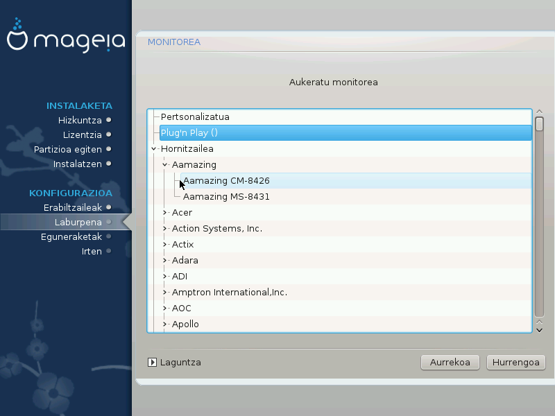 If the installer has not correctly detected your monitor and you know which one you have, you can choose it from the options by selecting: