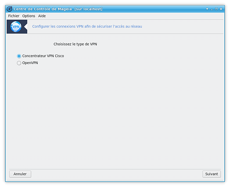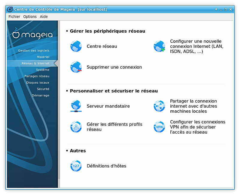Cet outil [19] se trouve dans l'onglet Réseau & Internet du Centre de Contrôle de Mageia, sous l'appellation Centre réseau