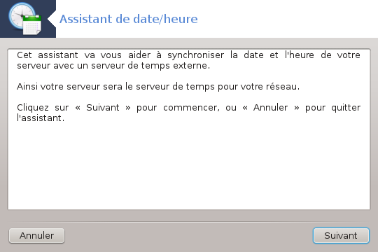 Le but de cet outil [9] est de synchroniser l'heure de votre serveur avec un serveur externe. Il n'est pas installé par défaut et vous devez aussi installer les paquetages drakwizard et drakwizard-base.