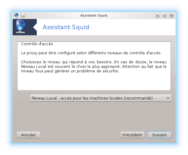 [8] Il est possible de démarrer cet outil depuis la ligne de commande, en tapant drakwizard squid sous root.
