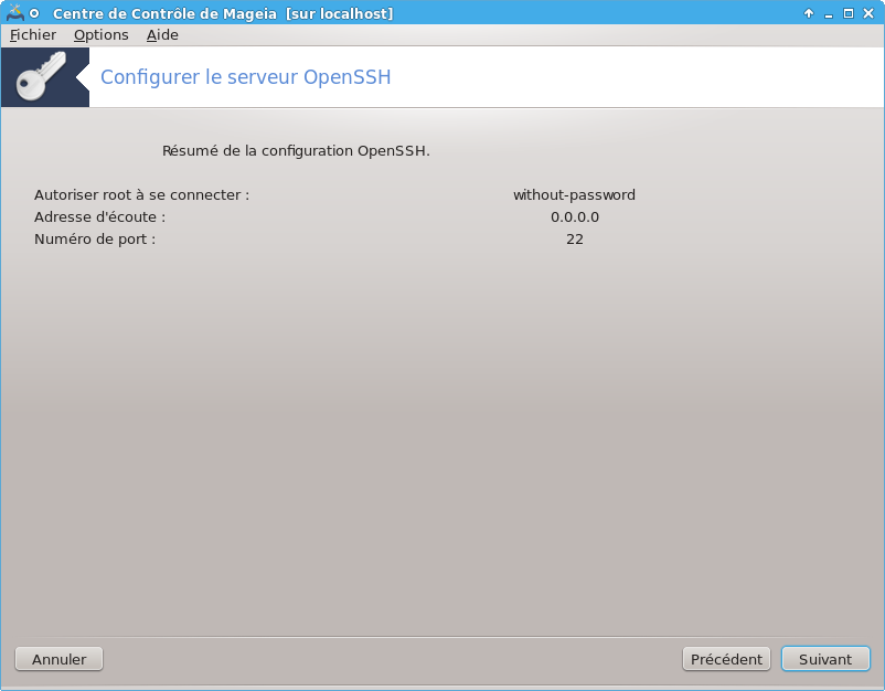 [10] Il est possible de démarrer cet outil depuis la ligne de commande, en tapant drakwizard sshd sous root.