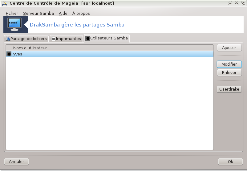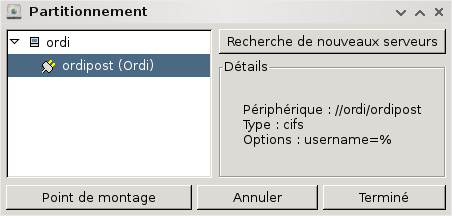 [35] Il est possible de démarrer cet outil depuis la ligne de commande, en tapant diskdrake --smb sous root.