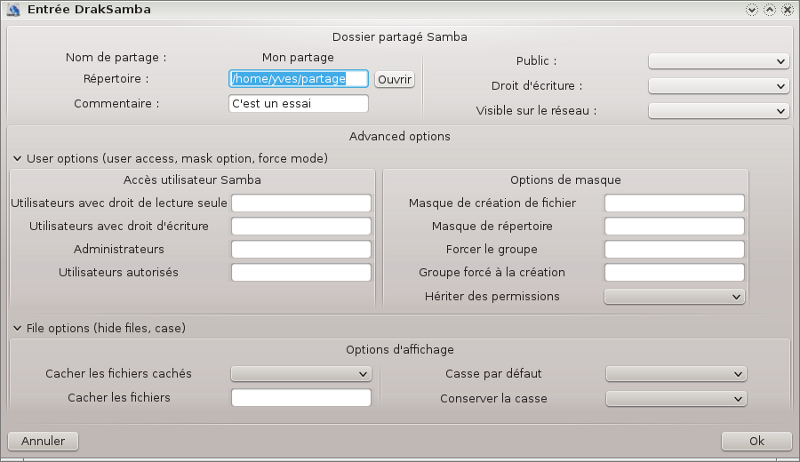 [36] Il est possible de démarrer cet outil depuis la ligne de commande en tapant sous root : draksambashare.