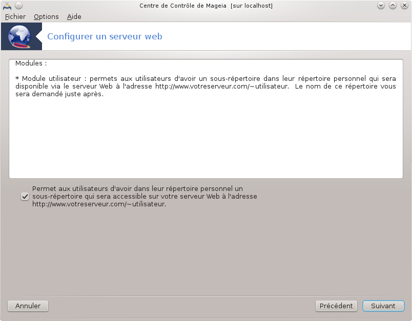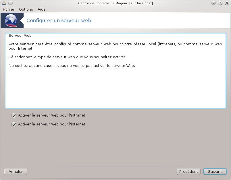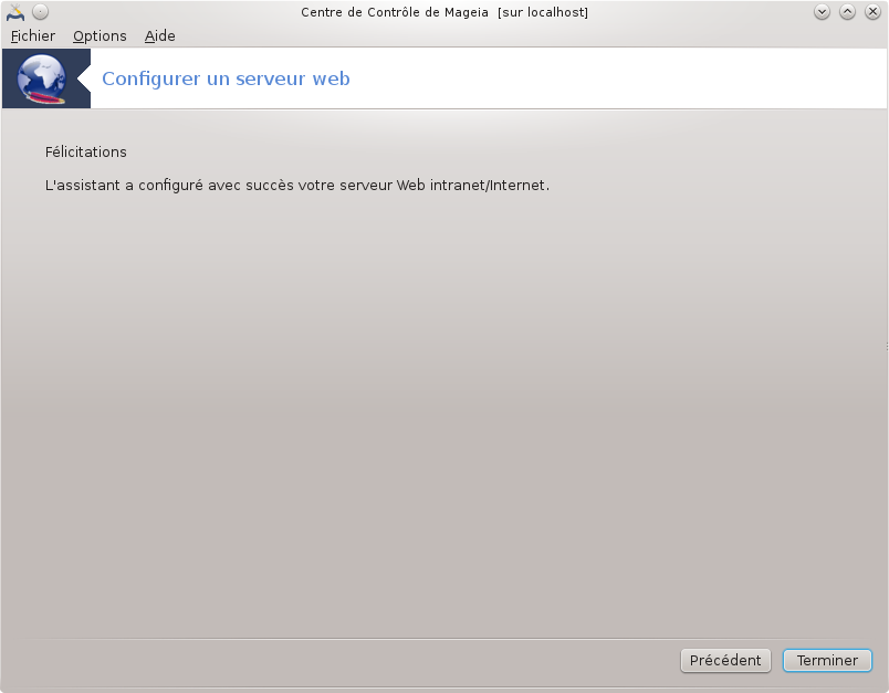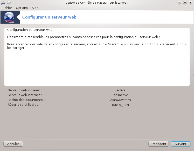 Bienvenue dans l'assistant du serveur Web.