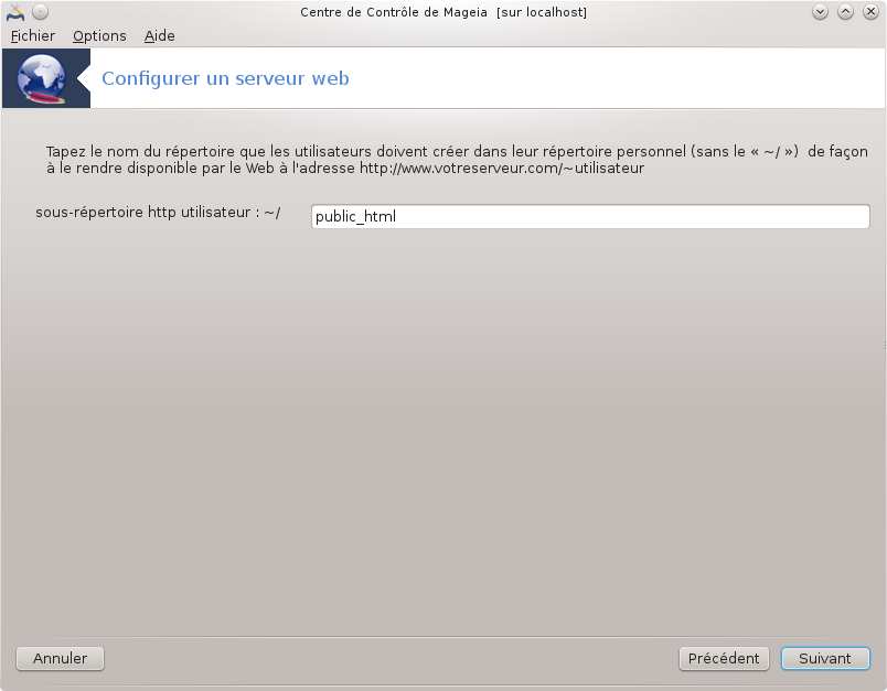Nom du répertoire web de l'utilisateur