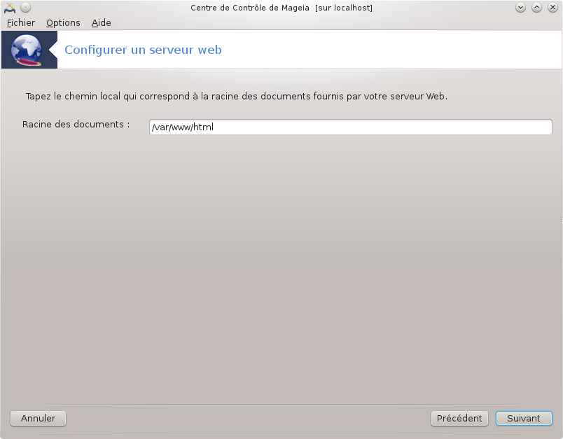 Ceci vous permet de configurer le chemin vers le répertoire par défaut des fichiers du serveur web : pages web, documents.