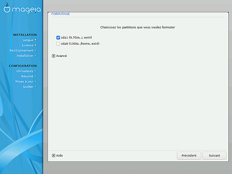 Choisir ici quelle(s) partition(s) est(sont) à formater. Toutes les données présentes sur les partitions non cochées seront préservées.