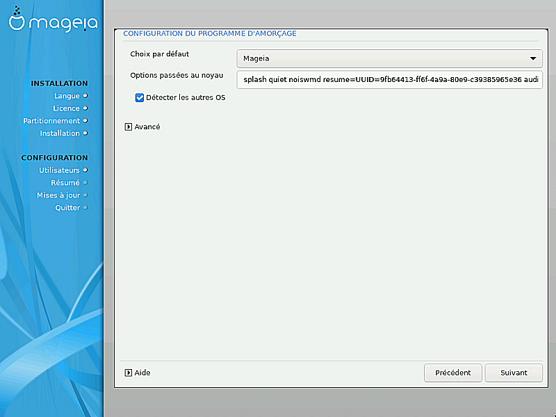 Si vous avez d'autres systèmes d'exploitation installés, Mageia tente de les ajouter à votre nouveau menu de démarrage. Si vous ne le souhaitez pas, décochez la case .