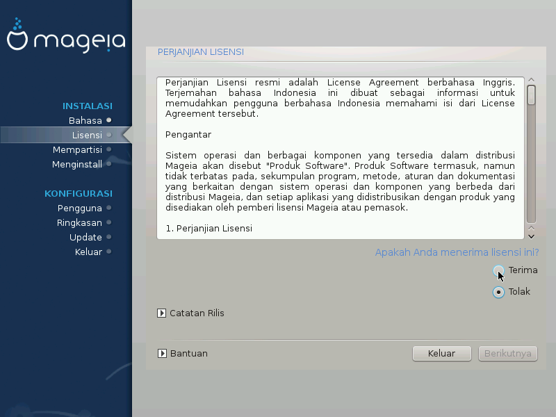 These terms and conditions apply to the entire Mageia distribution and must be accepted before you can continue.