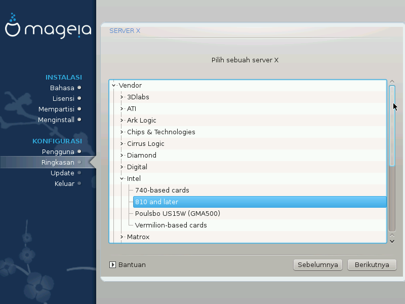 DrakX memiliki basis data perangkat video yang lengkap dan biasanya akan mengidentifikasi perangkat video Anda dengan benar.