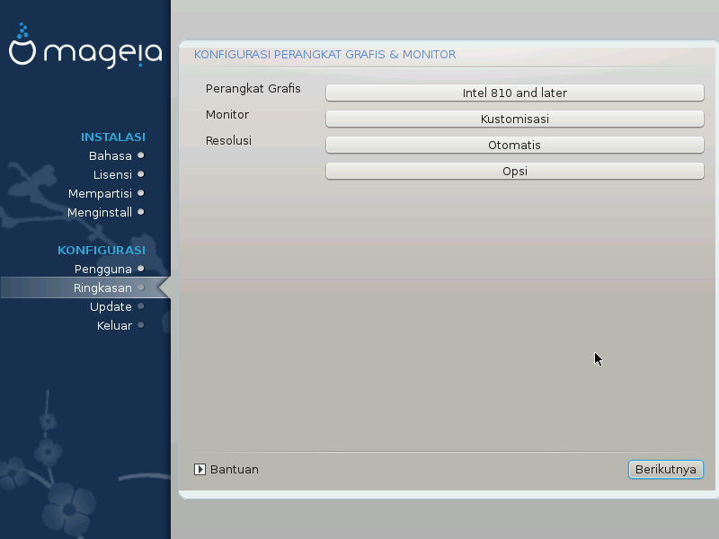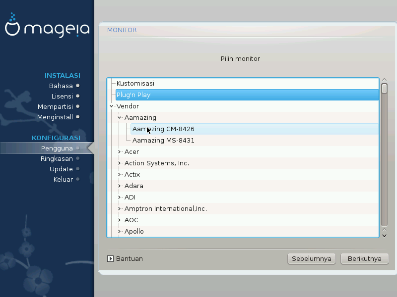 DrakX memiliki basis data monitor yang lengkap dan biasanya akan mengenali monitor Anda dengan tepat.