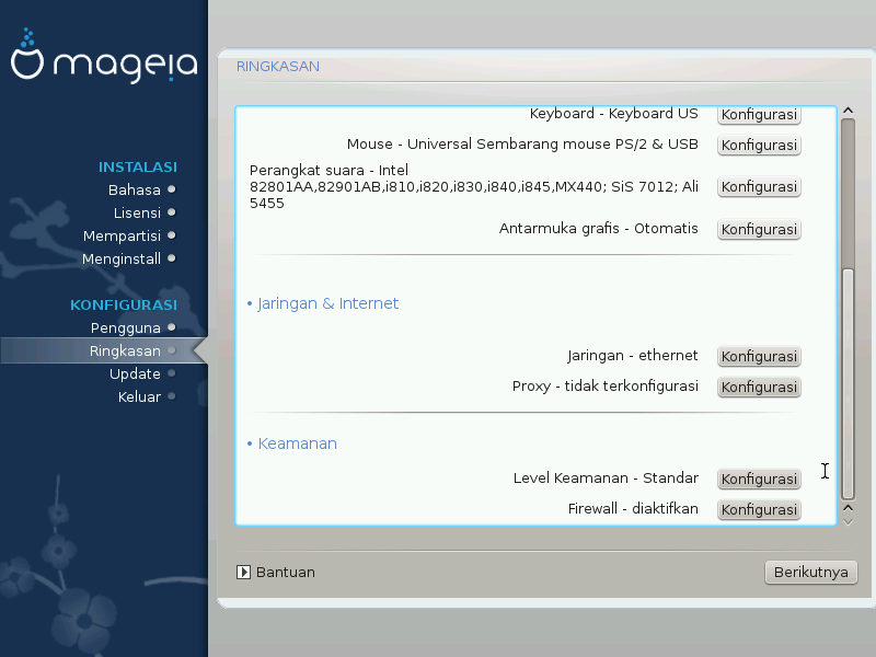 DrakX presents a proposal for the configuration of your system depending on the choices you made and on the hardware detected. You can check the settings here and change them if you want by pressing Configure.