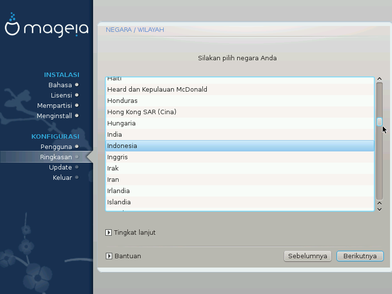 If your country is only in the Other Countries list, after clicking OK it may seem that a country from the main list was chosen. Despite this, DrakX will actually apply your choice.