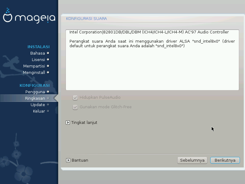 The default driver should work without problems. However, if after install you do encounter problems, then run draksound or start this tool via MCC (Mageia Control Center), by choosing the Hardware tab and clicking on Sound Configuration at the top right of the screen.