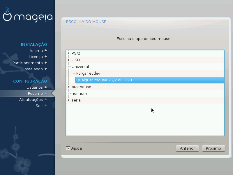 Normalmente, Universal → Qualquer mouse PS/2 e USB é uma boa escolha.