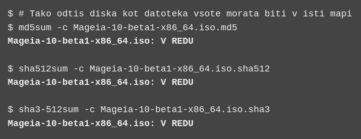 then compare the result (you may have to wait for a while) with the ISO checksum provided by Mageia.