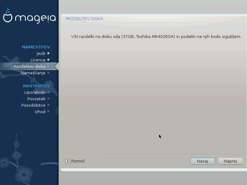 S tem imate popoln nadzor nad namestitvijo na (enem ali več) vaših diskov.