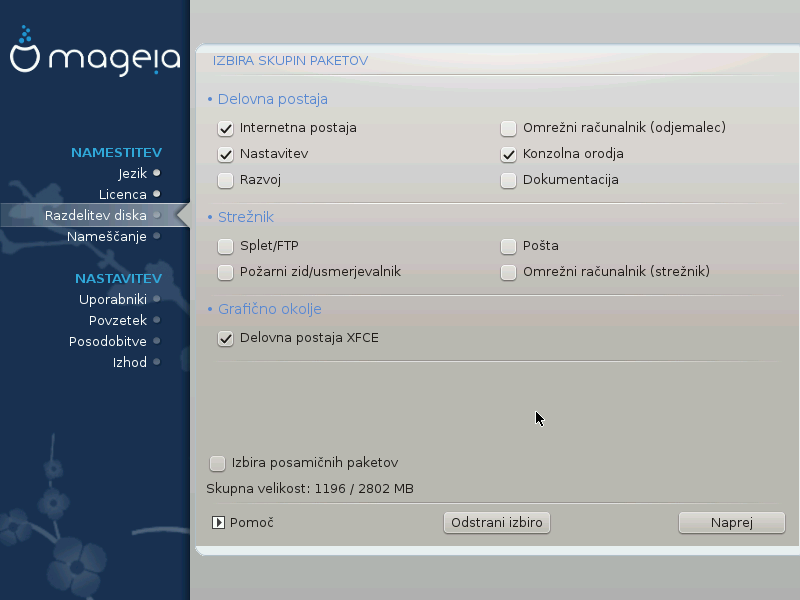Ta zaslon ponuja seznam že prepoznanih odlagališč paketov. Lahko dodate še kak drug vir, recimo DVD ali kak oddaljen vir. Ta izbor bo določil kateri paketi bodo na voljo v naslednjih korakih.