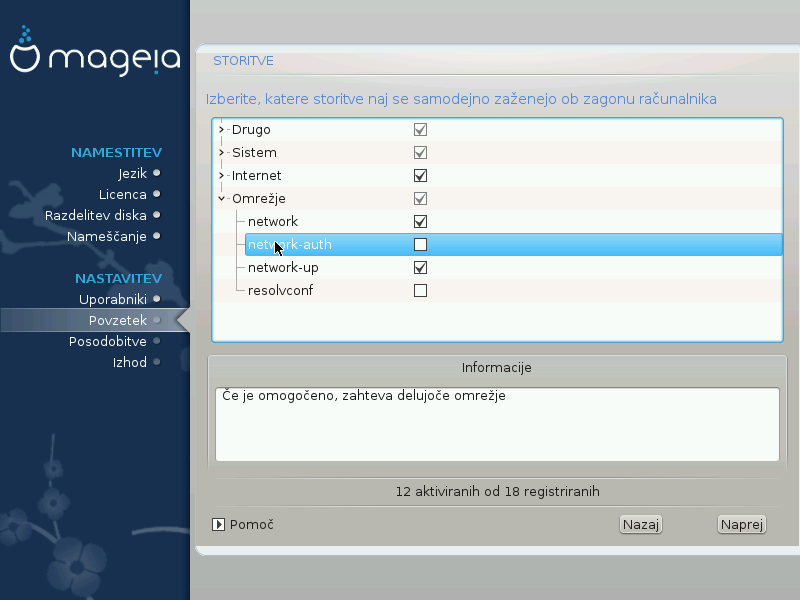 Tukaj lahko izberete ter nastavite storitve, ki naj se samodejno zaženejo ob zagonu računalnika.