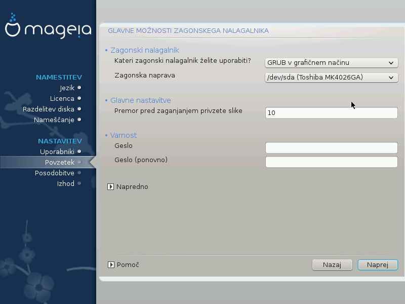 Do not change anything, unless you know how to configure GRUB2. For more information, see Zagonski nalagalnik
