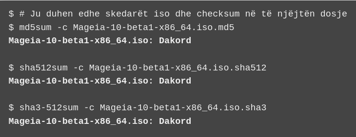 pastaj krahasoni rezultatin (mund të prisni për pak kohë) gjatë checksum ISO të siguruar nga Mageia.