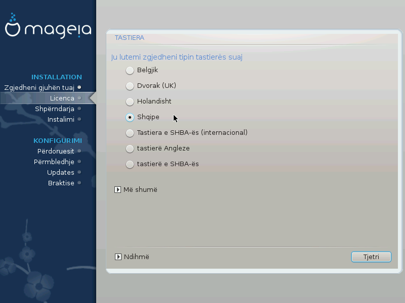 DrakX zgjedh një tastierë të përshtatshme për gjuhën tuaj. Nëse nuk gjendet një tastierë e përshtatshme, do të jetë e parazgjedhur një paraqitje të tastierës së SHBA.
