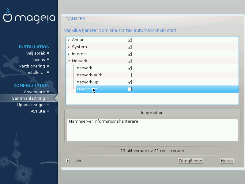 Här kan du välja vilka tjänster som ska startas när du startar upp ditt system.
