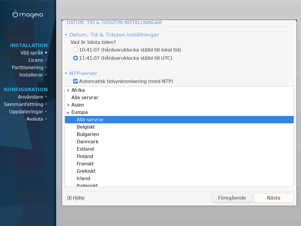 In this screen, you can choose between setting your hardware clock to UTC or