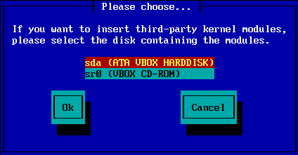 If you choose to install from either a CDROM or hard disk (or USB stick), a scan for storage devices will be performed: