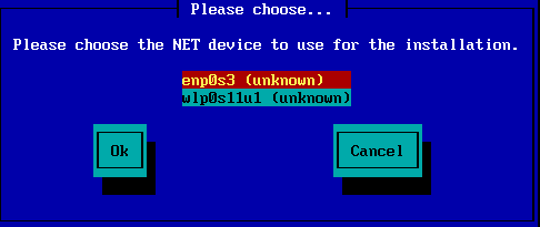If you are unsure what this means then you can just leave the fields blank, highlight Ok and press Enter to proceed. The network connection will now be activated.