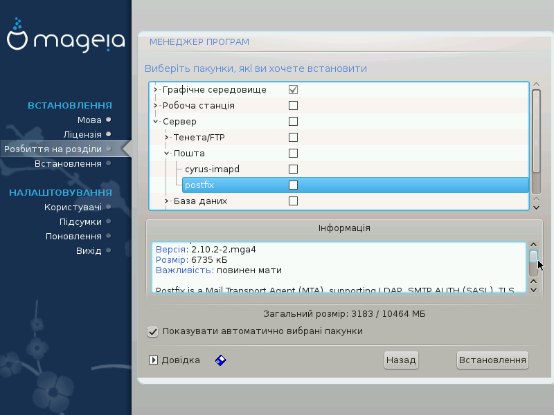 За допомогою цього варіанта ви можете вибрати додаткові пакунки, які доповнять встановлену вами систему, або вилучити пакунки, що є частиною типового набору.